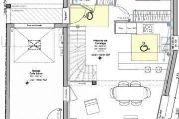 Comprenant au rez-de-chaussée, une entrée, une cuisine ouverte, un Salon / Séjour de 44 m², une chambre parentale, avec une salle d'eau, avec placard et de WC séparés,