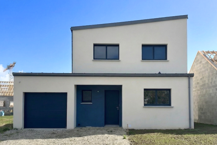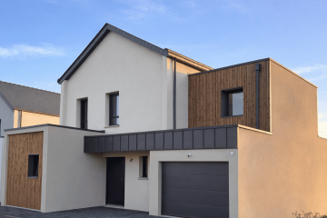 Maison sur-mesure 103 m² à Breal-sous-Montfort – 4 chambres, pièce de vie 40 m², garage intégré & toiture zinc quartz contemporaine