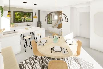 Sur un terrain de 230m², dans un environnement paysager et préservé agrémenté de cheminements arborés, nous vous suggérons une maison avec un étage de 70m².