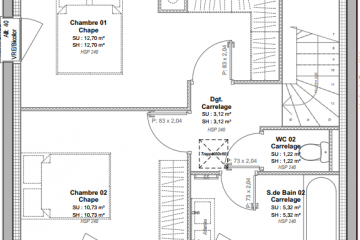 Sur un terrain de 230m², dans un environnement paysager et préservé agrémenté de cheminements arborés, nous vous suggérons une maison avec un étage de 70m².