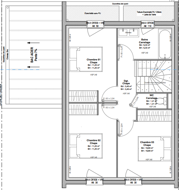 | Chambre(s) : 3 | Salle(s) de bain : 1 | Surface habitable : 95 m² |