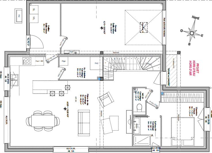 Cette maison est un projet hors d'eau / hors d'air (la maison est laissée aux clients, une fois le gros œuvre, les fenêtres, la couverture et le ravalement fait) et comprend :
