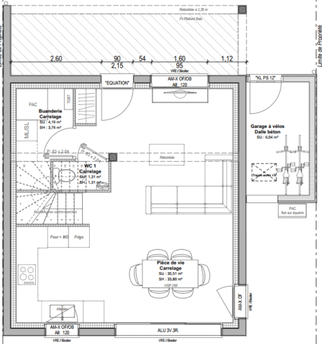 | Surface terrain : 216 m² | Surface annexe : 34 m² | Garage(s) : 0 |