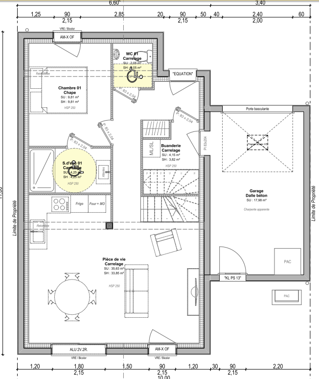| Surface terrain : 250 m² | Surface annexe : 43 m² | Garage(s) : 1 |