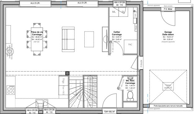 Surface terrain : 394 m² Surface annexe : 45 m² Garage(s) : 1