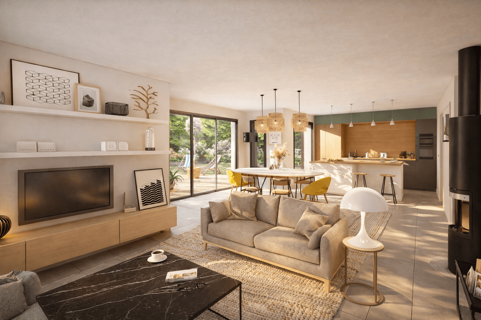 - Une pièce de vie de 52 m²