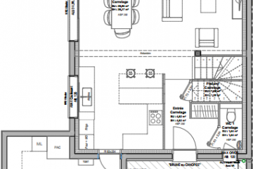 Au rez-de-chaussée, vous trouverez une entrée avec placard, une pièce de vie de 38 m² avec cuisine ouverte donnant accès à une terrasse, un cellier / arrière-cuisine de 12 m² et WC séparés.