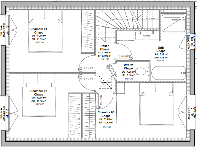 | Chambre(s) : 3 | Salle(s) de bain : 1 | Surface habitable : 92 m² |