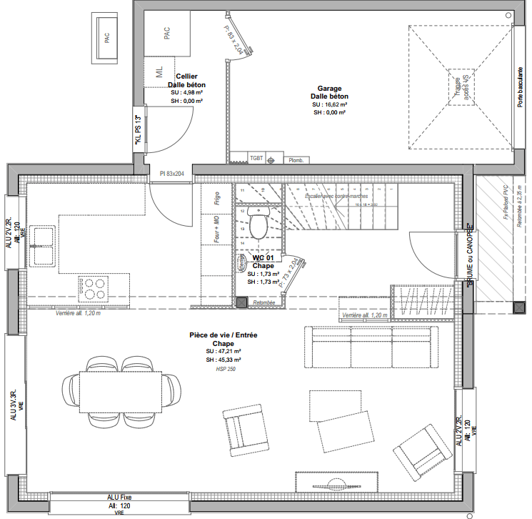 | Surface terrain : 361 m² | Surface annexe : 45 m² | Garage(s) : 1 |