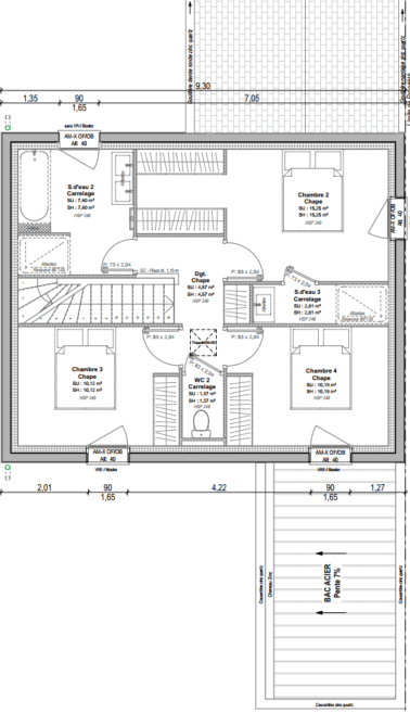 Cet exemple de maison de 119 m² habitables se compose :