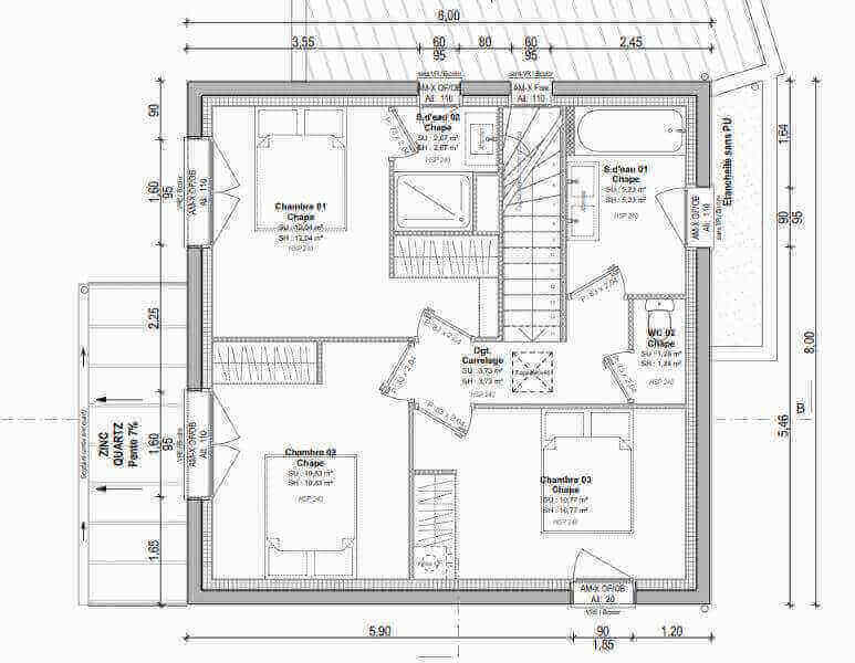 Nous vous offrons la possibilité de personnaliser un projet de maison ici d'une superficie de 100 m² répartie sur deux niveaux.