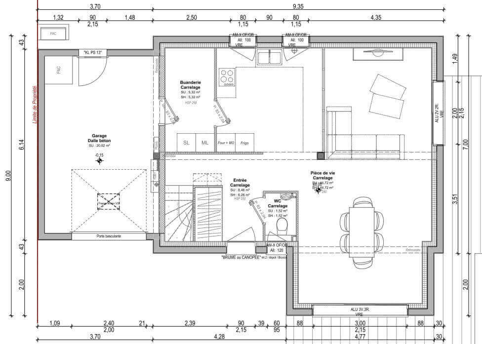 Cet exemple de maison fonctionnelle de 108 m² habitables se compose :