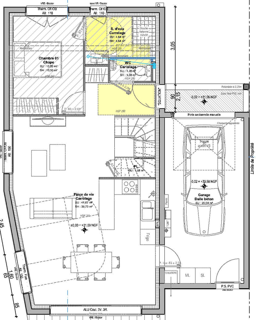 Le projet est implanté sur un terrain de 230 m², orienté SUD-OUEST, offrant une belle luminosité et un jardin.