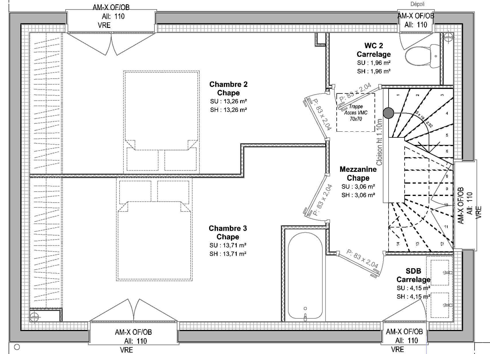 | Chambre(s) : 3 | Salle(s) de bain : 2 | Surface habitable : 102 m² |