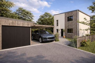 Le projet est implanté sur un terrain de 354 m², comprenant 49 m² de stationnement déporté accolé à la parcelle, et bénéficiant d’une superbe vue dégagée sur la nature environnante.
