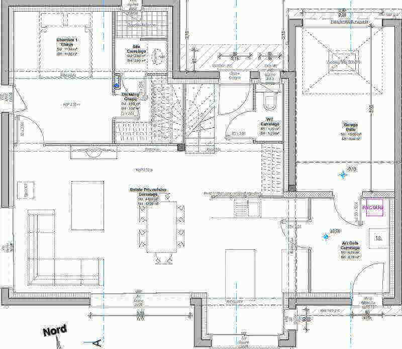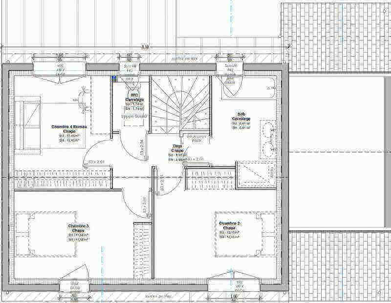 Cet exemple de maison de 115 m² habitables se compose :