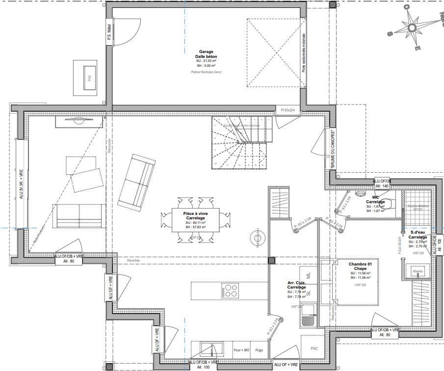 | Surface terrain : 343 m² | Surface annexe : 60 m² | Garage(s) : 1 |