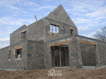 À Pacé, le chantier d’une nouvelle maison signée Maisons Création avance à un rythme soutenu. Les travaux de maçonnerie sont désormais achevés, permettant de révéler pleinement les volumes du projet. Une étape importante vient d’être franchie avant l’arrivée prochaine de la charpente, qui marquera la mise hors d’eau de la maison.