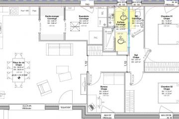 Sur terrain de 388 m² en plein centre-bourg de Bonnemain, dans un cadre paisible et verdoyant, et de toutes ses commodités, nous vous proposons une MAISON RE2020 de plain-pied d'une surface de 83 m² disposant de 3 grandes chambres, une salle de bains, 1 WC indépendant, grand espace de vie.
