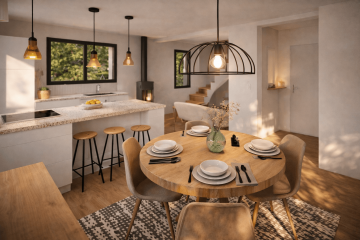 Sur un terrain de 230m², dans un environnement paysager et préservé agrémenté de cheminements arborés, nous vous suggérons une maison avec un étage de 70m².