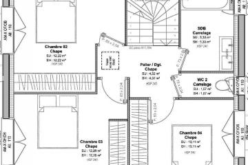 Cet exemple de maison à étage, composée de 5 pièces et développant 95 m² habitables, se compose :