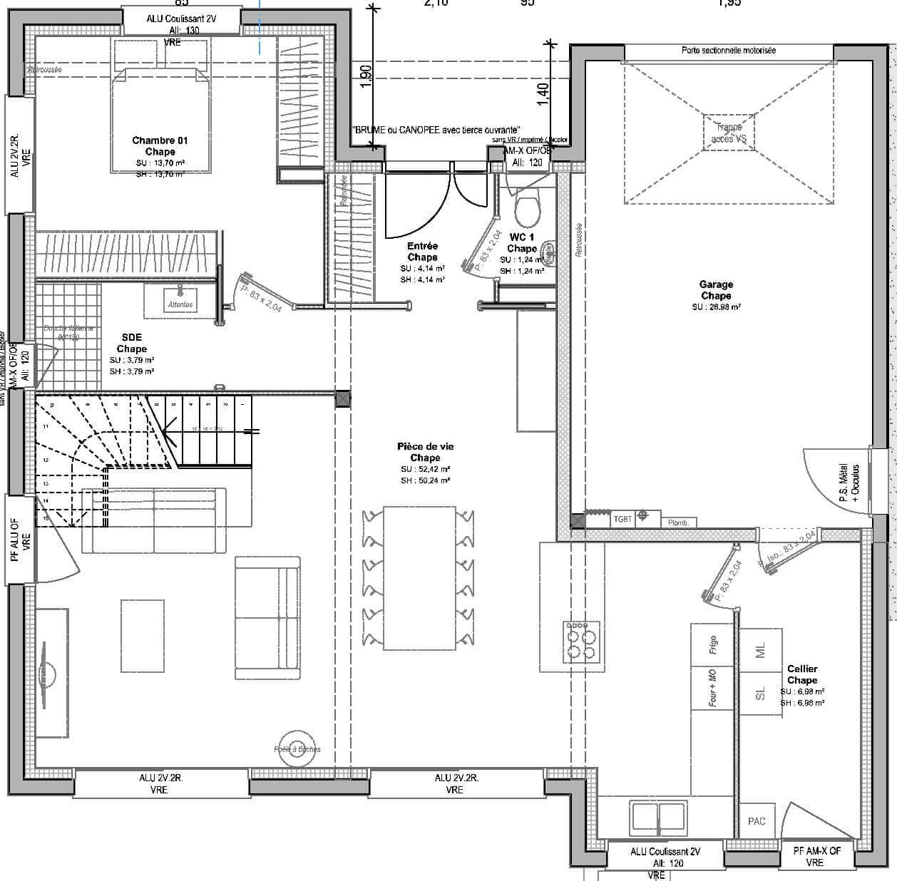 Elle bénéficie d'une belle luminosité grâce à sa parcelle de 371m² orientée Sud-Ouest en lisière de lotissement. Ce projet personnalisable à 100% propose une surface habitable de 100m² comprenant : au rez-de-chaussée, un sas d'entrée avec placard donnant accès aux WC, une belle pièce de vie de 50m² exposée Sud-Ouest sans vis-à-vis, un cellier/buanderie avec accès au garage et au jardin et une suite parentale comprenant une chambre de 14m² avec de grands placards et une salle d'eau.