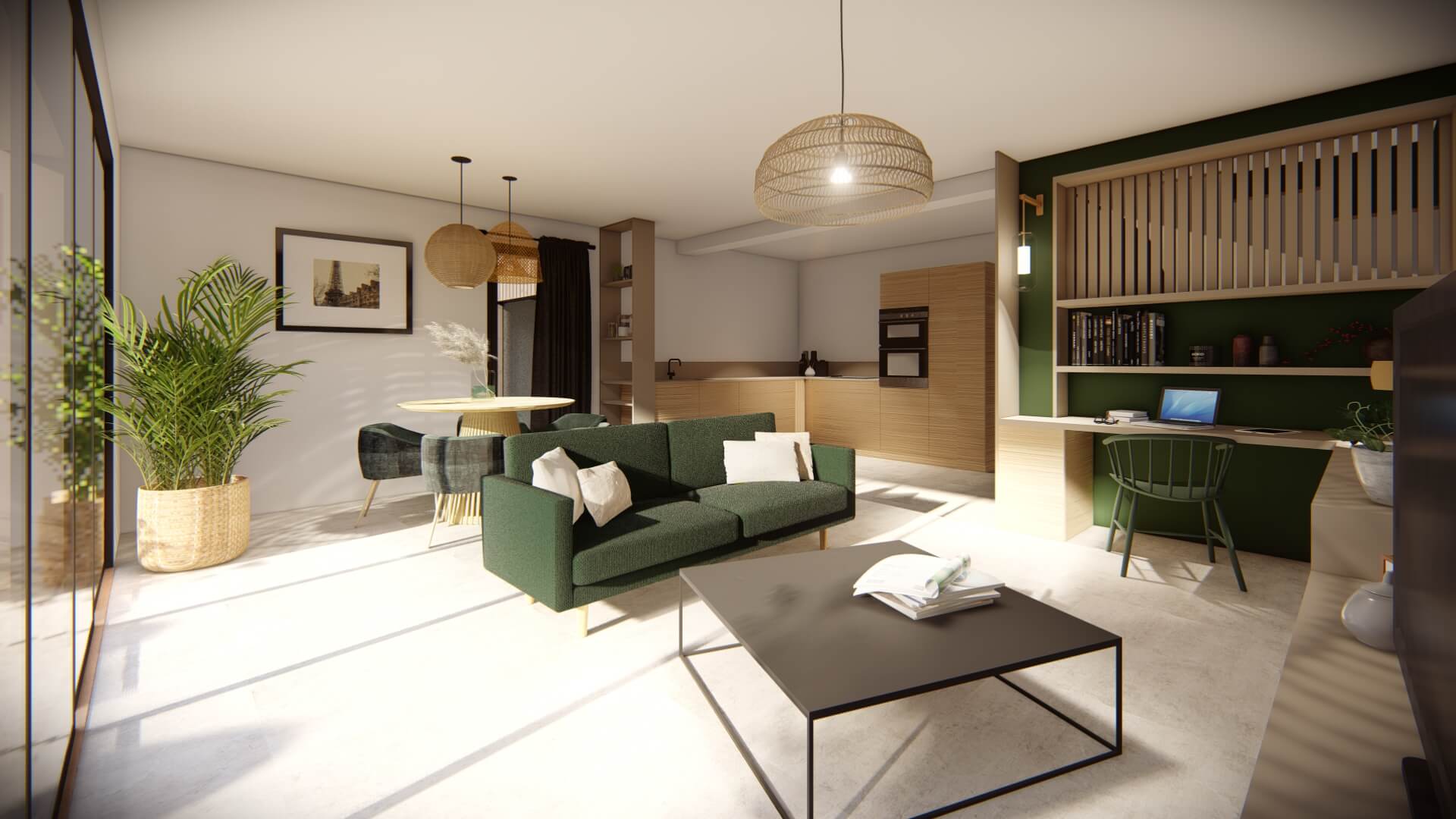 - Une pièce de vie d’environ 40 m² avec cuisine ouverte