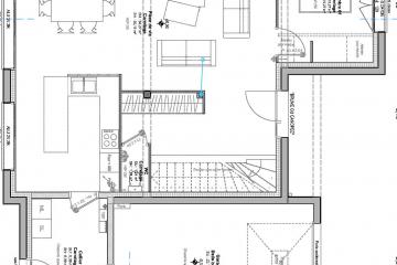 Elle bénéficie d'une belle luminosité, d'un jardin orienté Sud de 425m² et se compose de 6 pièces réparties sur 119m². Au rez-de-chaussée se trouvent une entrée, une pièce de vie de 56m², une cuisine ouverte, des WC séparés et une chambre.