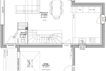 - Au rez-de-chaussée : entrée, pièce de vie d'environ 45 m² avec cuisine ouverte, une buanderie et WC séparés. Possibilité 4ème chambre.
