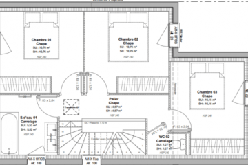 Maison de 3 à 4 chambres, entre 90 m² et 102m² habitables, comprenant :