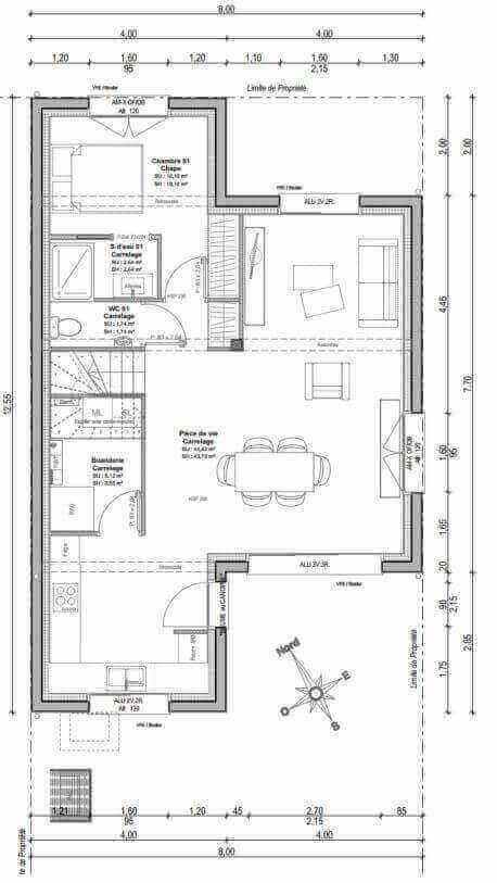 | Surface terrain : 240 m² | Surface annexe : 40 m² | Garage(s) : 1 |