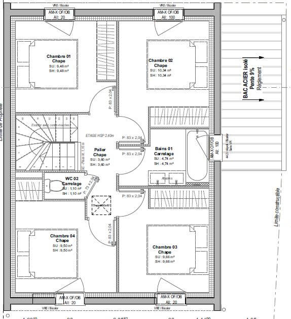 | Chambre(s) : 4 | Salle(s) de bain : 1 | Surface habitable : 100 m² |