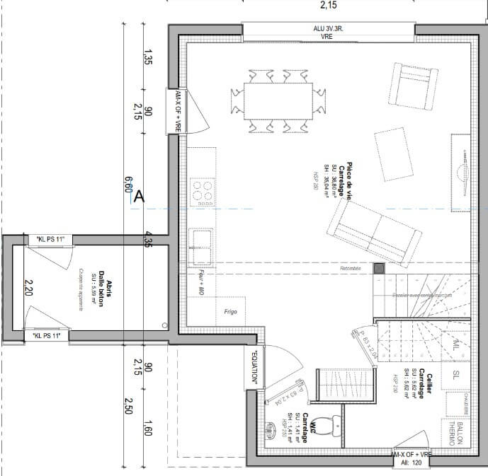 | Surface terrain : 223 m² | Surface annexe : 36 m² | Garage(s) : 0 |