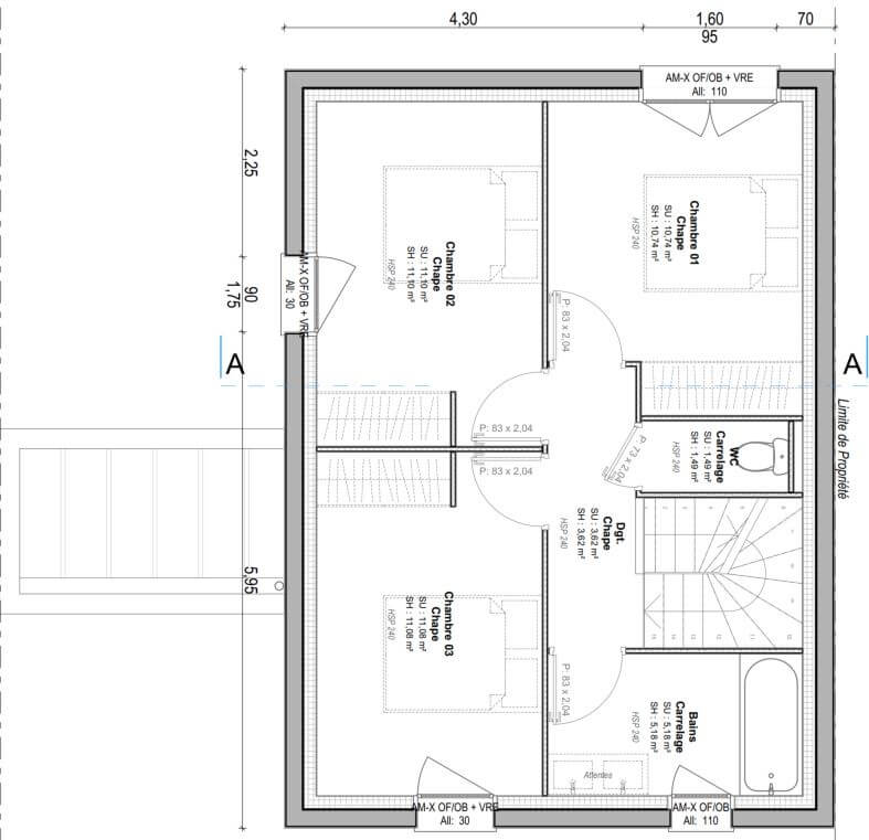 | Chambre(s) : 3 | Salle(s) de bain : 1 | Surface habitable : 85 m² |