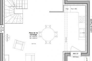 Ce projet comprend au rez-de-chaussée, une entrée avec placard, une cuisine ouverte, sur un salon/séjour lumineux de 40 m².