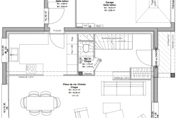 | Surface terrain : 361 m² | Surface annexe : 45 m² | Garage(s) : 1 |