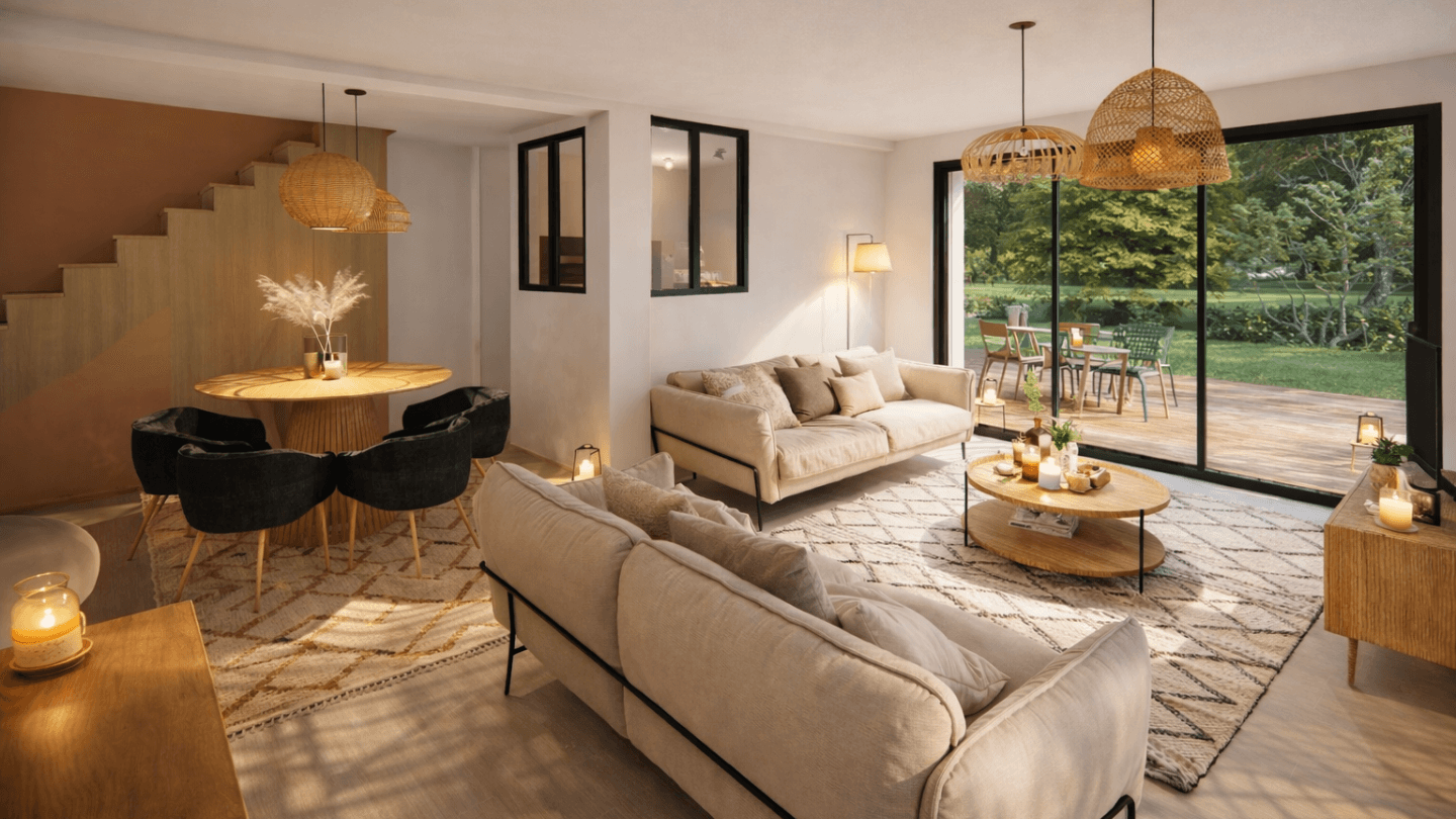 *Terrain proposé et vendu par notre partenaire foncier selon disponibilité et autorisation de publicité, prix du terrain hors frais de notaire et d’hypothèque. Prix maison : hors papiers peints, peintures, revêtements de sol dans les chambres, cuisines, meubles vasques, et faïences (modifiable sans préavis, prix variables suivant les prestations souhaitées) hors frais d’hypothèque.