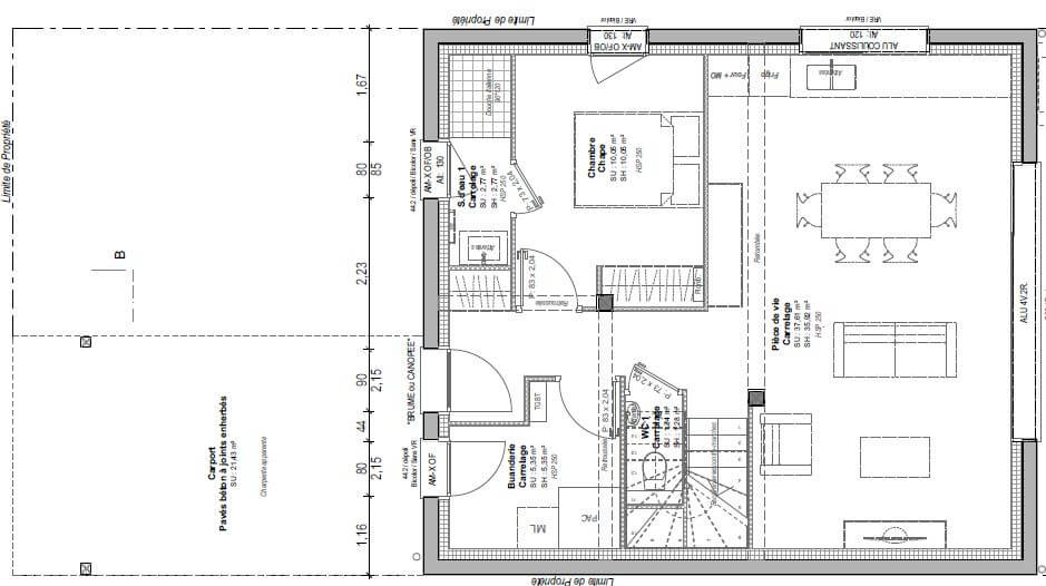 | Surface terrain : 213 m² | Surface annexe : 36 m² | Garage(s) : 0 |