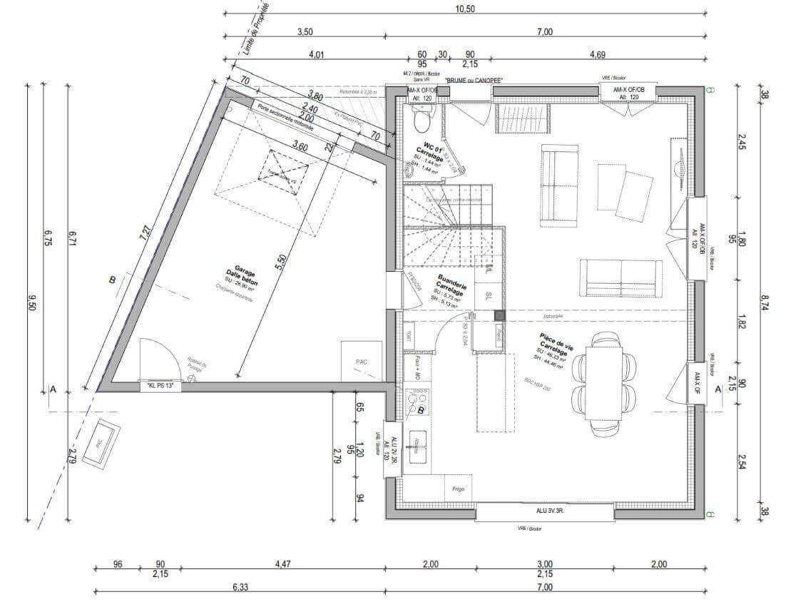 Cet exemple de maison de 93 m² se compose :
