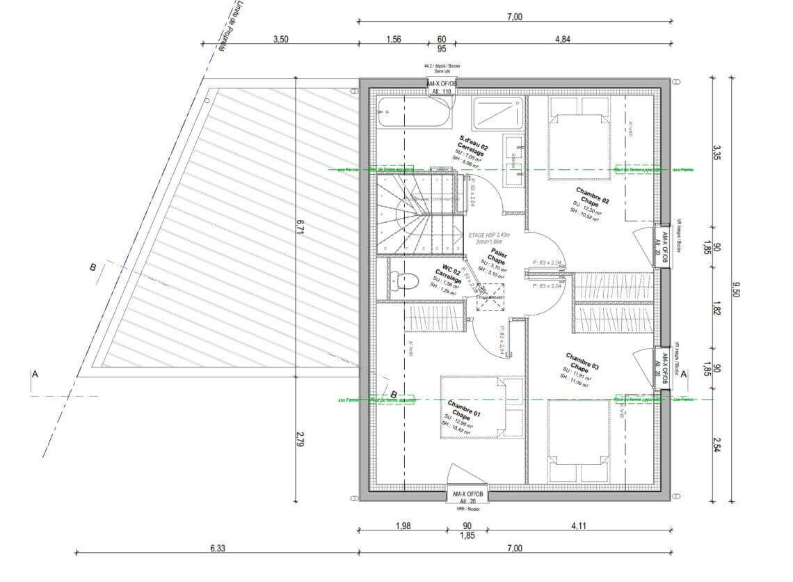 Cet exemple de maison de 93 m² se compose :
