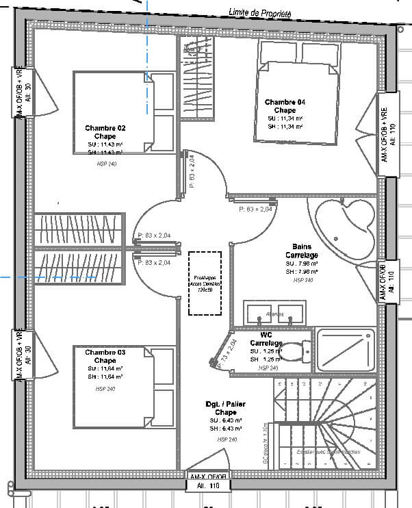 | Chambre(s) : 4 | Salle(s) de bain : 2 | Surface habitable : 115 m² |