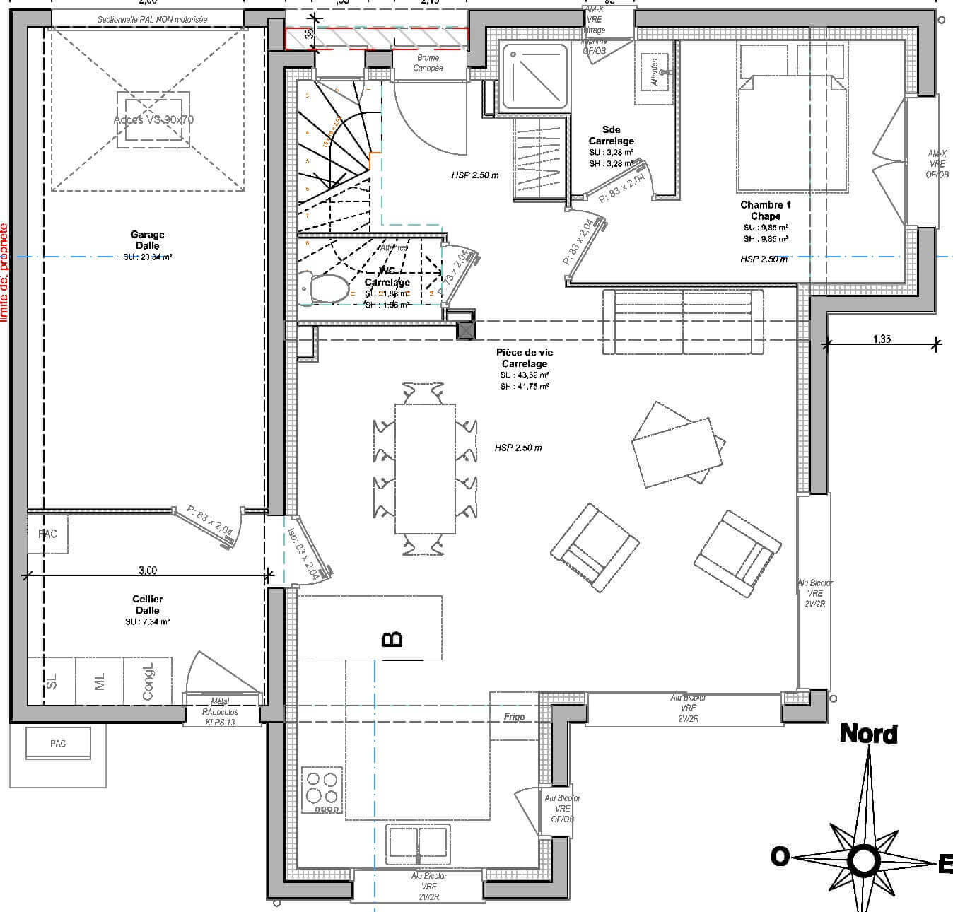 | Surface terrain : 394 m² | Surface annexe : 42 m² | Garage(s) : 1 |
