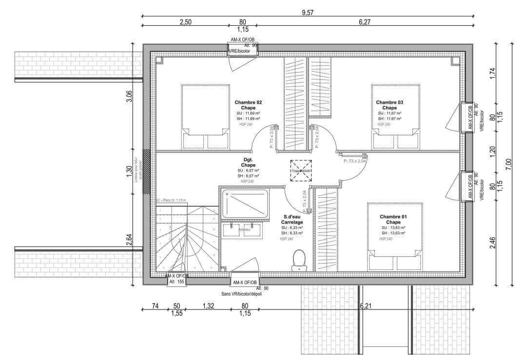 Cet exemple de maison fonctionnelle de 108 m² habitables se compose :