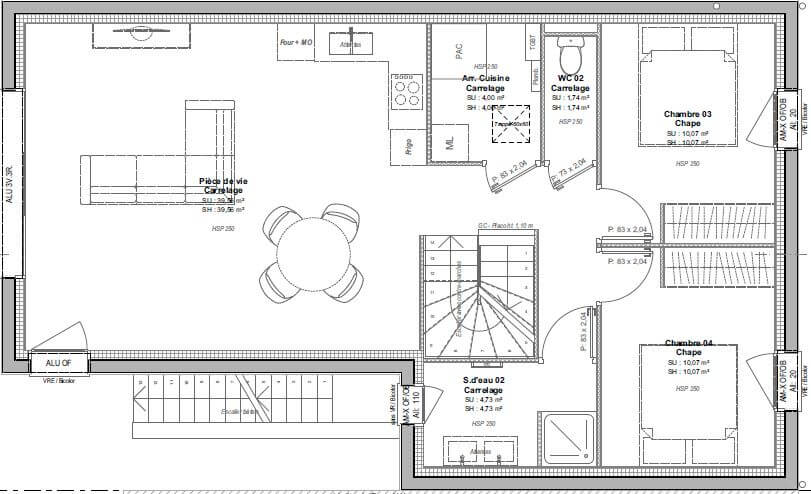 | Chambre(s) : 4 | Salle(s) de bain : 2 | Surface habitable : 105 m² |