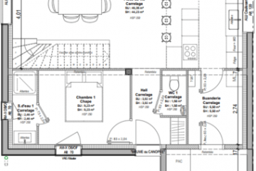 - Une vaste pièce de vie de 45 m² avec cuisine ouverte et salon, bénéficiant d’une hauteur sous plafond de 3 m avec poutres apparentes